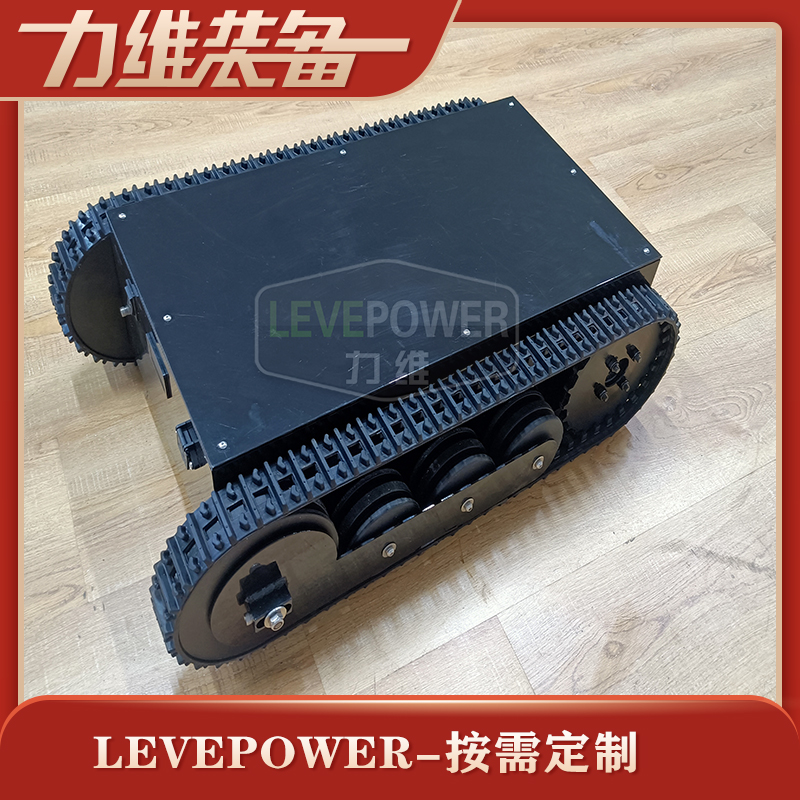 橡膠履帶底盤長706mm,橡膠履帶底盤寬483mm,橡膠履帶底盤高215mm,無線航模遙控履帶底盤采用48v350W直流無刷電機,渦輪蝸桿減速機,轉彎靈活,操控簡單。履帶底盤電池采用48V30AH鋰電池續航時間更長。履帶底盤箱體采用鋼板焊接而成,輪系采用高分子聚乙烯,履帶底盤整體重量輕,耐磨性強。