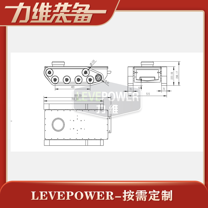履帶底盤長888mm,履帶底盤寬515mm,履帶底盤高296mm,PWM無線遙控履帶底盤通訊方式:Can總線,485,232.箱體采用鋁合金材質焊接而成,防腐性能好。履帶底盤動力采用48V800W直流無刷電機,渦輪蝸桿減速機動力更強,轉彎靈活。履帶底盤電池采用48V40AH鋰電池,續航時間更長,是一款不錯的機器人橡膠履帶。