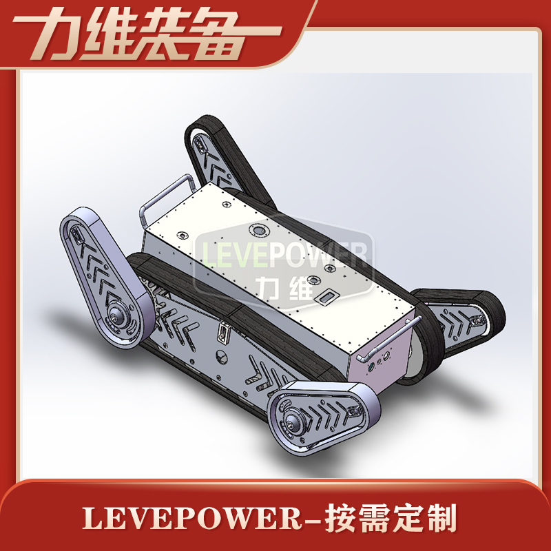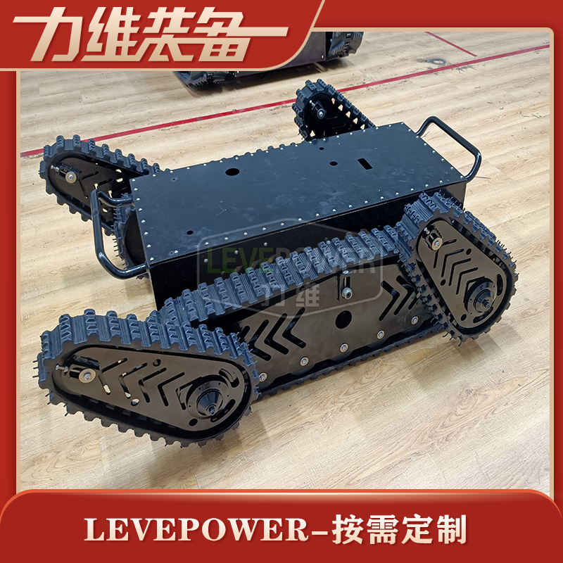 DP-LY-100主體履帶選擇100mm寬度履帶,擺臂履帶選擇70mm寬度履帶,橡膠履帶采用天然橡膠加凱夫拉纖維高溫硫化而成,輪子采用高分子聚乙烯材質(zhì),耐磨性能強(qiáng),橡膠履帶合理的橫紋設(shè)計(jì),越野性能更強(qiáng),是一款不錯(cuò)的履帶越野底盤。特種橡膠履帶底盤長(zhǎng)1071mm,履帶底盤寬809mm,履帶底盤高300mm,無(wú)線遙履帶底盤搭載48V1KW直流無(wú)刷電機(jī),RV50渦輪蝸桿減速機(jī),動(dòng)力更強(qiáng)。擺臂部分采用2個(gè)1kw的直流無(wú)刷電機(jī),履帶底盤采用48V80AH鋰電池,續(xù)航時(shí)間60分鐘。四驅(qū)履帶越野底盤,動(dòng)力更強(qiáng)。爬樓履帶機(jī)器人底盤,前后擺臂設(shè)計(jì),不僅外觀漂亮,越野性能更強(qiáng),爬樓性能更穩(wěn)定。履帶底盤框架采用鋁合金箱體焊接而成,底盤承載力大,是一款全地形履帶底盤.