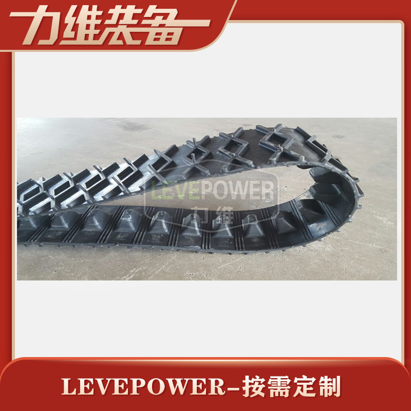 此產(chǎn)品采用復(fù)合橡膠橡膠,內(nèi)置高強度芳綸,外花紋偏向于平紋,采用網(wǎng)格狀設(shè)計,大限度的增大了履帶的接地面積,履帶式底盤裝上此產(chǎn)品走起來非常平穩(wěn)。