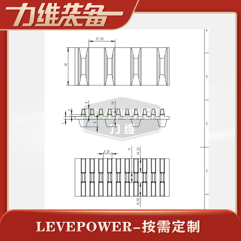 履帶外花紋采用圓弧橫紋間接設計,內齒節距密度采用密集節距設計,主要應用于機器人底盤機械臂的配套使用。