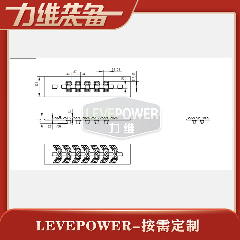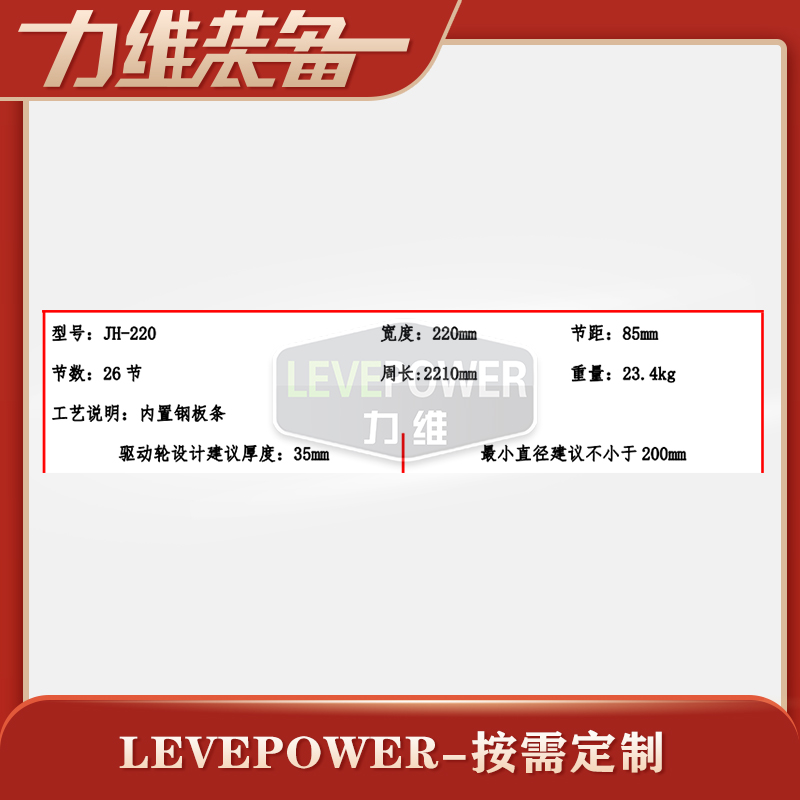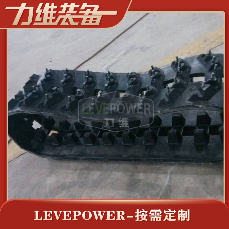 此履帶為插齒履帶,外花紋采用高齒不規則八字梯形緊密設計,內齒采用雙內齒梯形結構設計,此款特種橡膠履帶帶體較厚,內置鑄鋼骨架,大大的提升了履帶的載重能力,外花紋抓力能力強,此履帶用于草地、土地、沙地都非常適合。