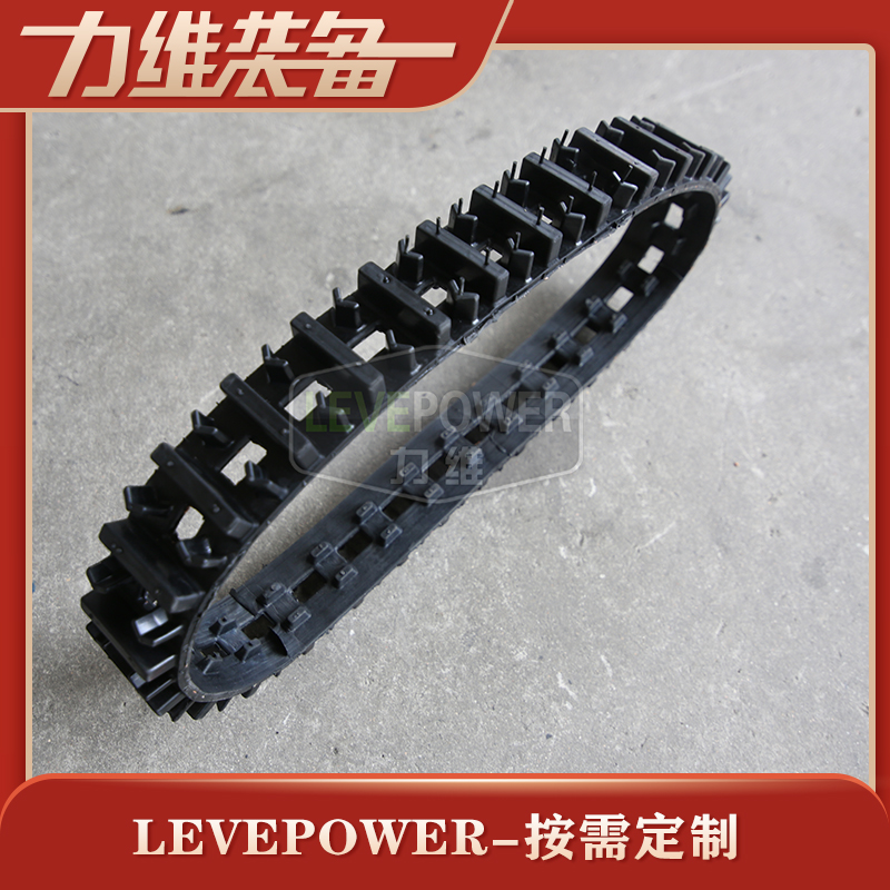 此履帶采用高耐磨橡膠,是一款耐磨橡膠履帶,內置凱夫拉纖維,輕巧,耐用,并且防滑效果好。可以在較窄的區域限制內使用,也可以在雪地,泥濘地里行走,內置激光件骨架,此產品用于不超過總載重200kg以內的機械裝備使用。
