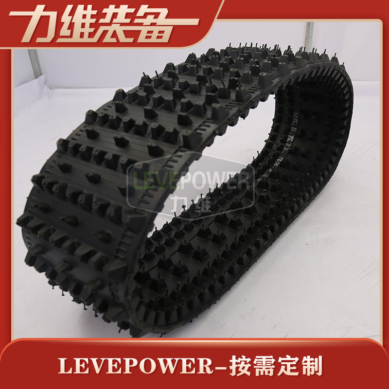 此款橡膠履帶為撥齒履帶,外花紋方形小塊高齒結(jié)構(gòu)設(shè)計,特別適合軟泥地、沼澤地使用,抓地力很強(qiáng),內(nèi)齒采用雙排齒梯形適中高齒設(shè)計,帶體內(nèi)置鋼結(jié)構(gòu)骨架。