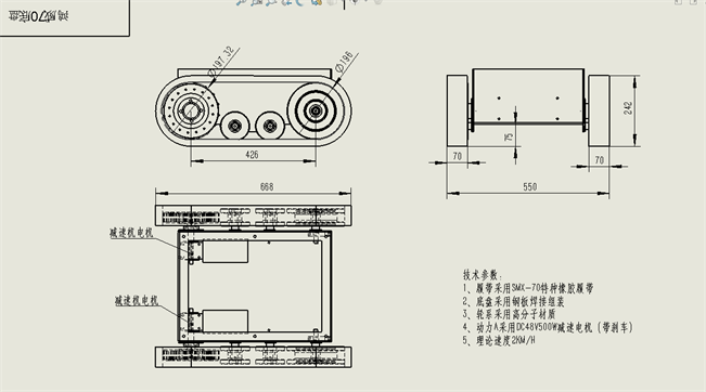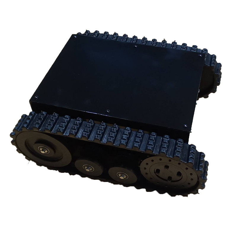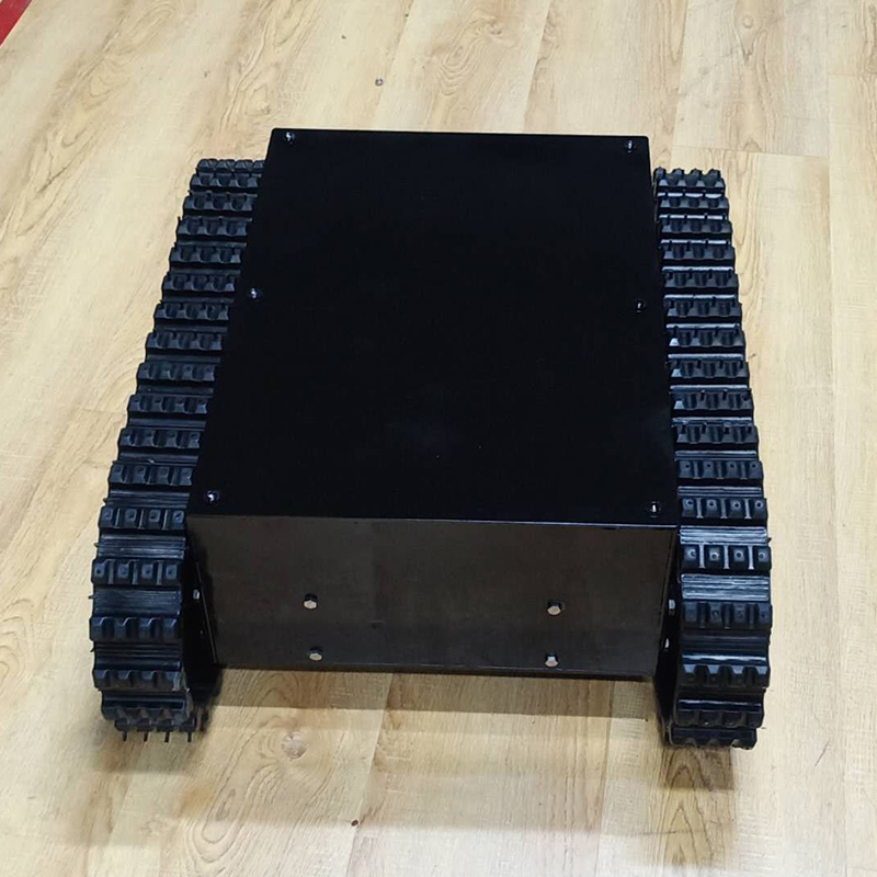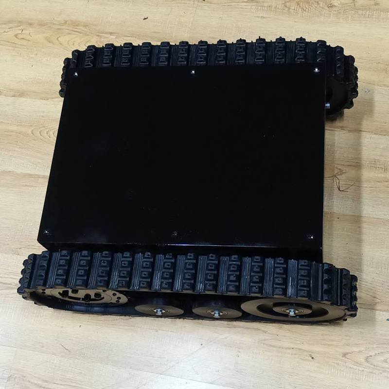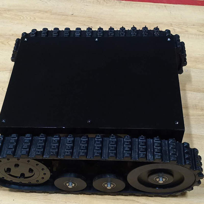 履帶底盤長(zhǎng)668mm,履帶底盤寬550mm,履帶底盤高242mm,無線遙控履帶底盤箱體采用鋼板材質(zhì)焊接而成,防腐性能好。履帶底盤動(dòng)力采用48V500W直流無刷電機(jī),渦輪蝸桿減速機(jī)動(dòng)力更強(qiáng),轉(zhuǎn)彎靈活。履帶底盤電池采用48V20AH鋰電池,續(xù)航時(shí)間更長(zhǎng),是一款不錯(cuò)的機(jī)器人橡膠履帶。