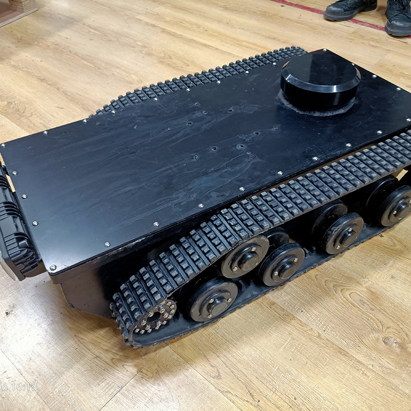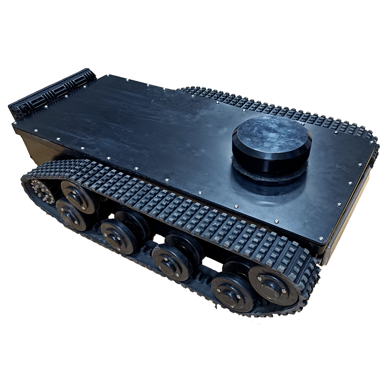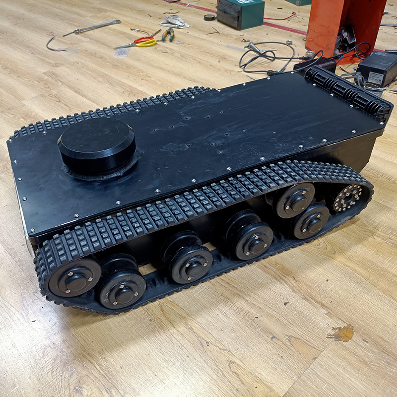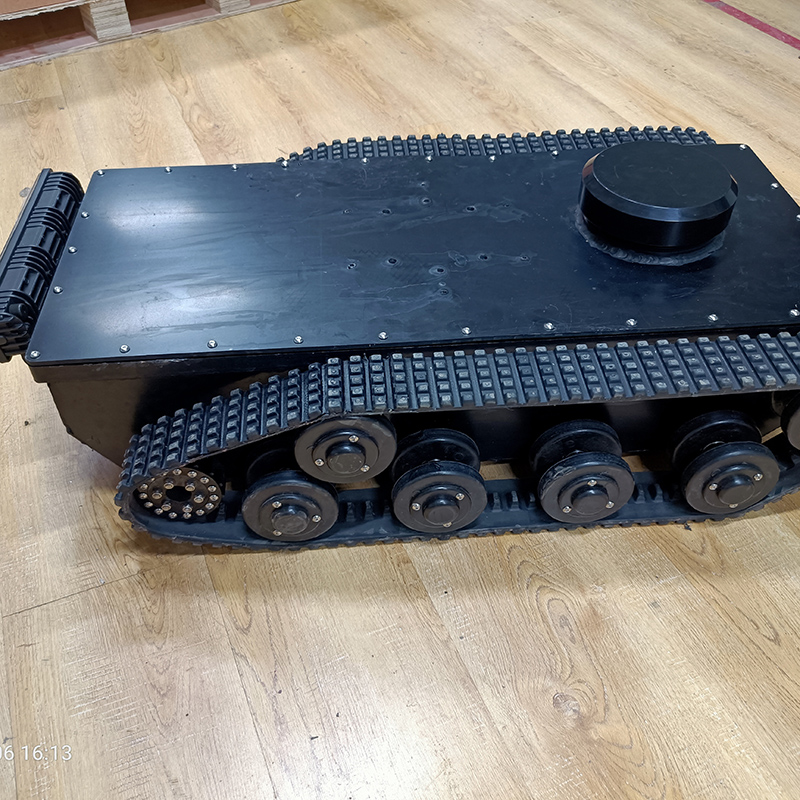 履帶底盤長888mm,履帶底盤寬515mm,履帶底盤高296mm,PWM無線遙控履帶底盤通訊方式:Can總線,485,232.箱體采用鋁合金材質焊接而成,防腐性能好。履帶底盤動力采用48V800W直流無刷電機,渦輪蝸桿減速機動力更強,轉彎靈活。履帶底盤電池采用48V40AH鋰電池,續航時間更長,是一款不錯的機器人橡膠履帶。